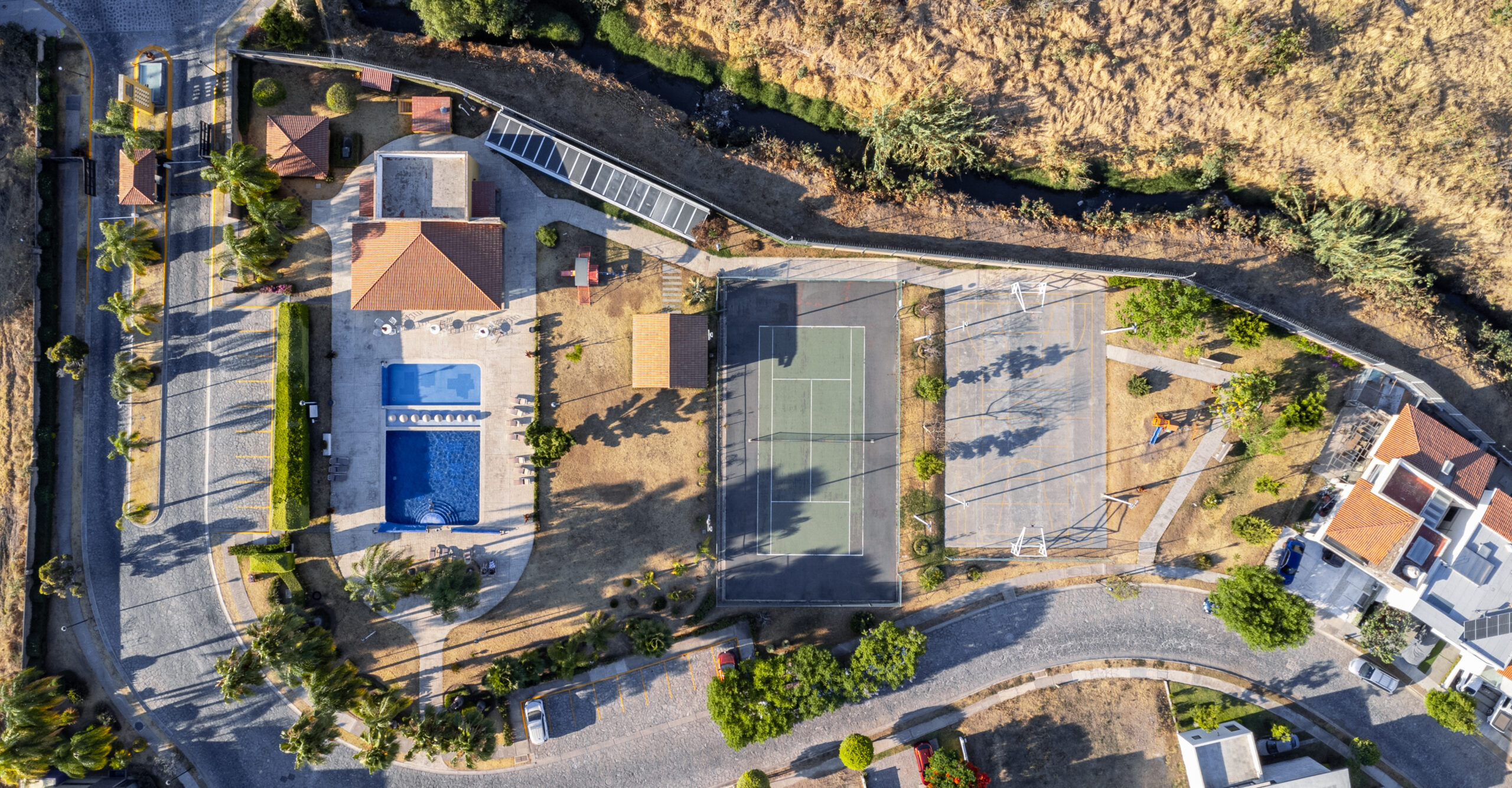 cancha de tenis, futbol, básquet, alberca, terraza, área de juegos para los más pequeños.
